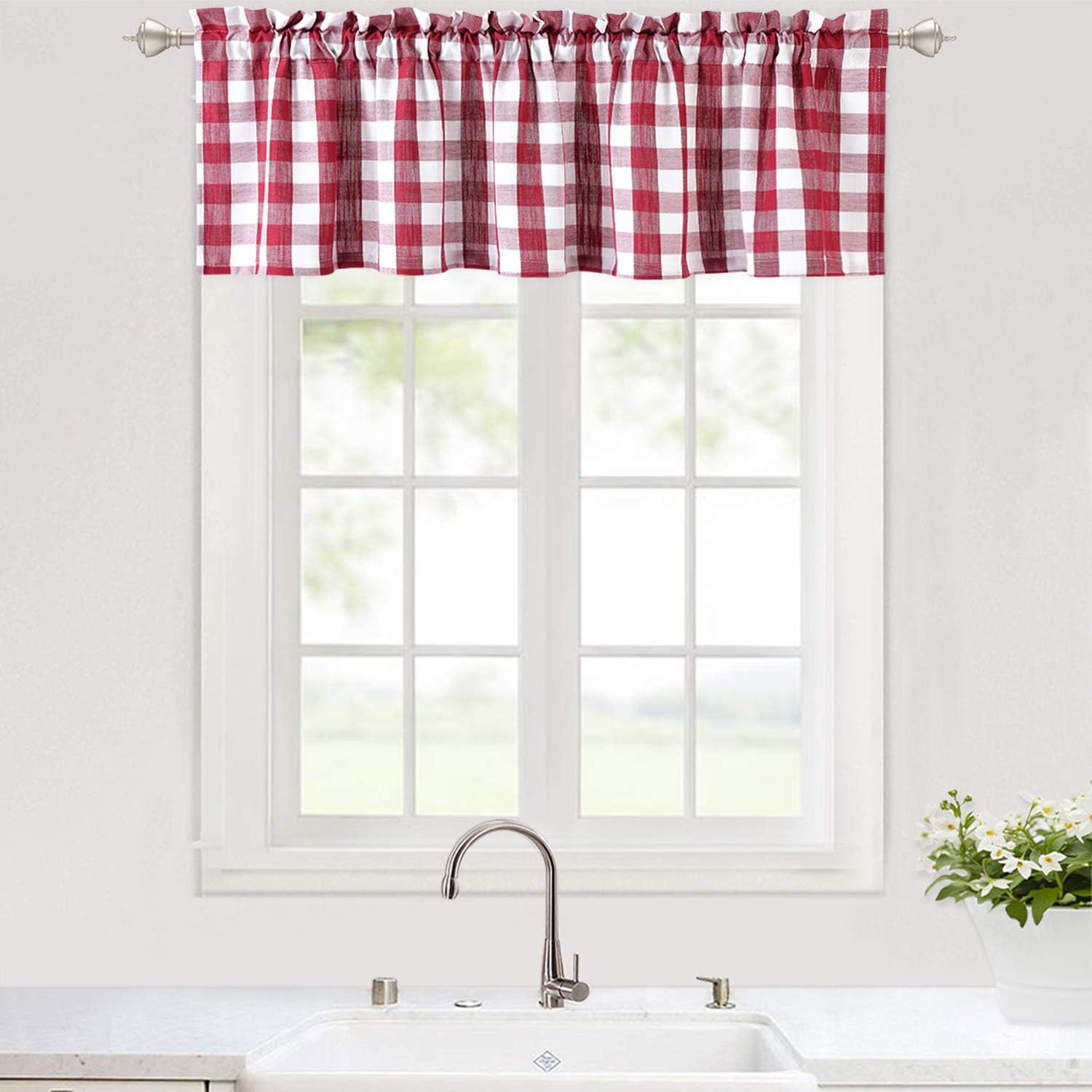 Buffalo Red and White Check Kitchen Window Valance 2 Pack Half Short Gingham Plaid Farmhouse Textured Short Window Drape Panel Home Decor Curtain Valance. $12.97. $12. . 97. 5% coupon applied at checkout. Extra 5% off with coupon. Get it as soon as Wed, Nov 3.
