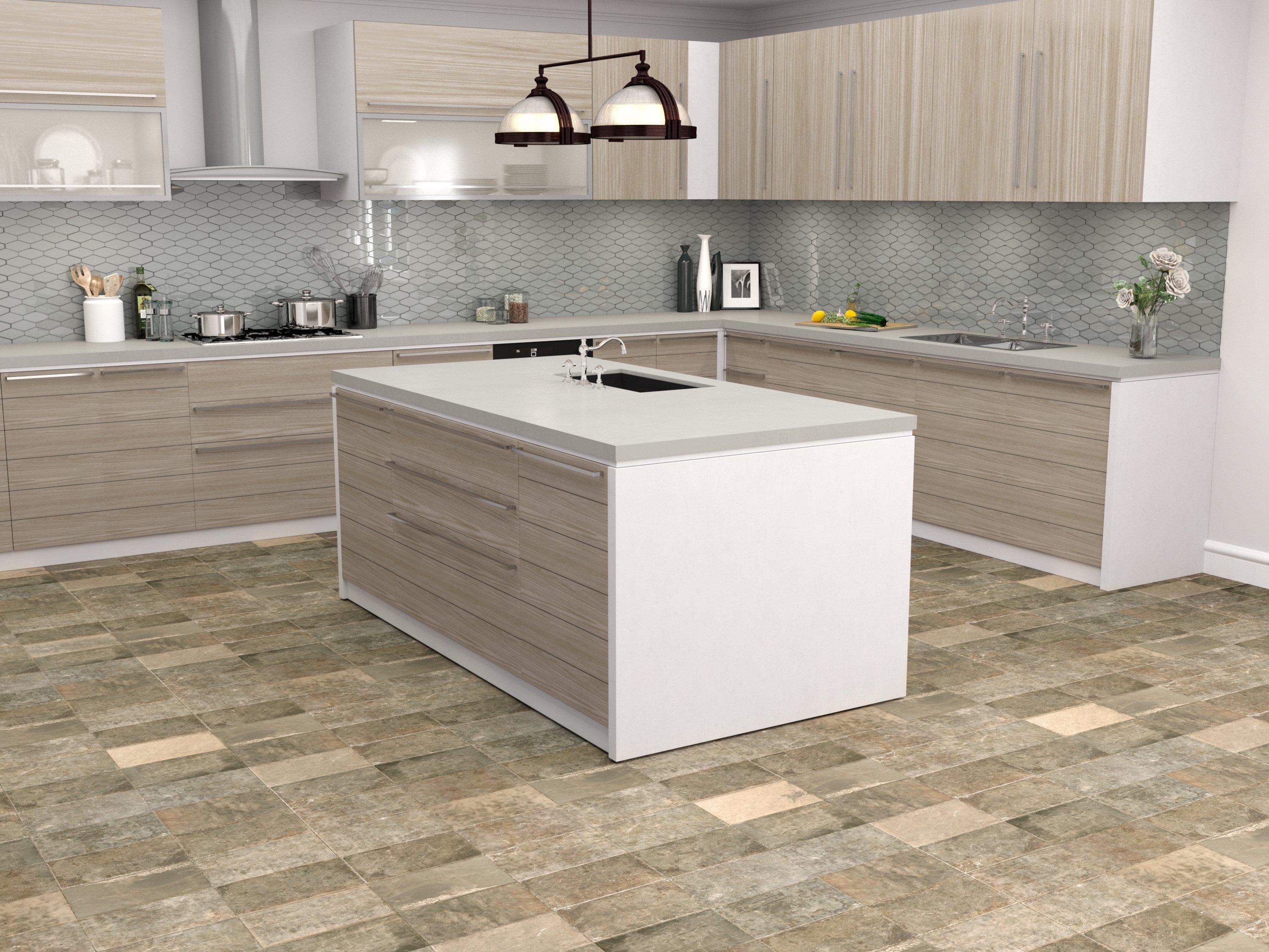 They are nearly ubiquitous these days, which must mean that people love them, right? But if you so much as tip over a glass, it'll shatter against the countertop. Lose your grip on a bowl or plate and say goodbye: if the countertop doesn't get it, the stone floor tiles will. And if the destruction isn't enough, stone countertops and floor tiles turn your kitchen into an echo chamber. Riverdale 8-Pack White 12-in x 24-in Glazed Porcelain Slate Stone Look Floor and Wall Tile. Model # 63RV10. Find My Store. for pricing and availability. 2. 2. Satori. Charcoal Ledgestone 6-in x 12-in Natural Stone Slate Stone Look Wall Tile. Model # 1001-0111-1. Slate look tile kitchen are beautiful, unique and versatile. Perfect for both rustic and modern looks. Recreate a natural relaxing look with slate floor look tiles that offer the luxurious aesthetic of real slate while being durable enough to withstand the rigours of a busy home. Prev - Next. 1. A rich and heterogeneous collection of stone ... 200 matches. ($2.59 - $371.43) Find great deals on the latest styles of Slate tile kitchen. Compare prices & save money on Flooring Supplies.