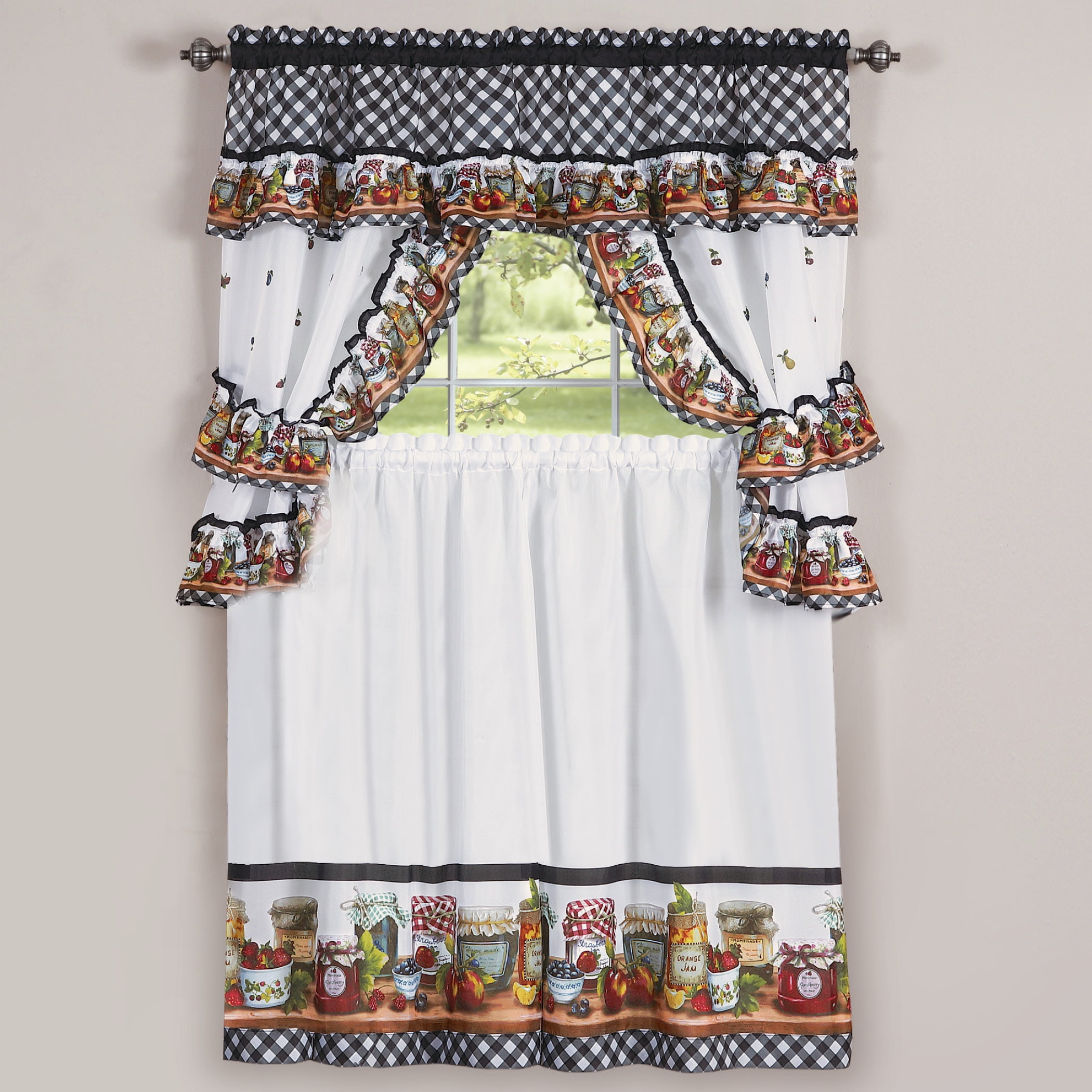 Kitchen Curtains Options $6.97 Mainstays Beckham Geometric Semi-Sheer Rod Pocket Kitchen Curtains in White 63 Save with 3+ day shipping $19.99 All American Collection Modern Embroidered 3pc Kitchen Curtain Set With Swag Valance and Available Tablecloth Separately 7 3+ day shipping $17.99 VCNY Audrey 3-piece Kitchen Curtain Tier & Swag Set - Gold 26