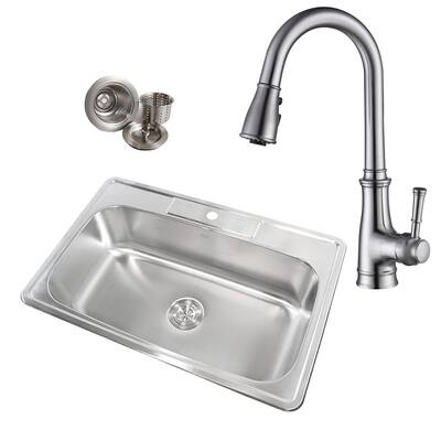 Franke Evolution All-in-One 33 Wide 9-inch Deep Top Mount 4-Hole Double Bowl Kitchen Sink Kit, EVDAG904-18KIT, 33" x 22" x 9", Satin Stainless Steel ...Color: Satin Stainless SteelSize: 33" x 22" x 9"Material: Stainless Steel Rating: 3.5 · 7 reviews The Houzer 3322-9BS Glowtone Series Drop-in Double Bowl Kitchen Sink boasts a traditional design double bowl configuration with deep 9-inch bowls. The exquisite brushed satin finish and polished highlighted rim belies the rugged 18 gauge construction, resulting in a refined, classic design. This product comes with 3-holes and fits 36-inch cabinets. 12 18 24 All. per page. Kore™. 27" Farmhouse Apron Front Workstation 16 Gauge Stainless Steel Single Bowl Kitchen Sink in PVD Gunmetal Finish with Accessories # KWF210-27-PGM. In stock. Kore™. 15" Drop-In Top Mount Workstation 16 Gauge Stainless Steel Square Single Bowl Kitchen Bar Sink with Accessories # KWT321-15.