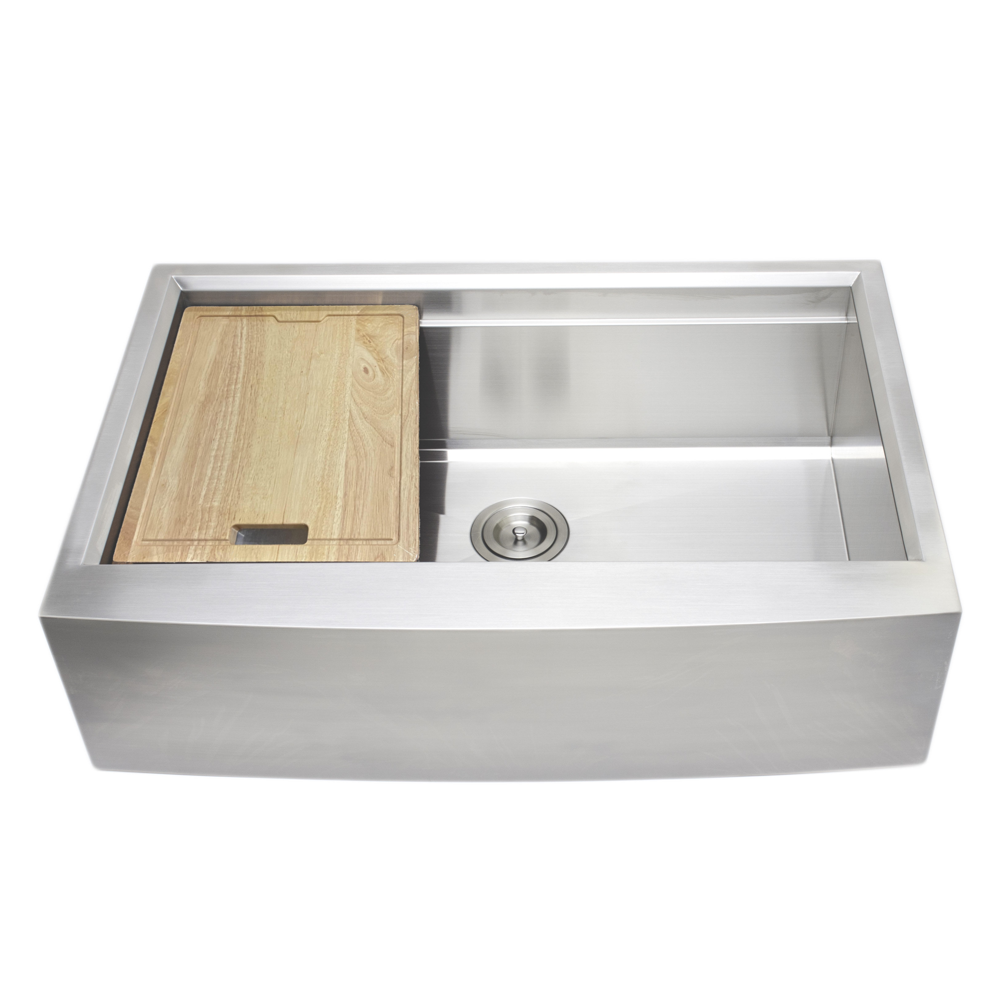 What We Love: Deep basins, drain at the back of the sink, durable What We Don't Love: Prone to scratches This industrial-grade sink is both functional and attractive. While the 50/50 basin is the most functional in our opinion, Zuhne offers a similar 60/40 basin and a 60/40 low divide basin option. All three versions amount to the same size: 32 x 19 x 10 inches.