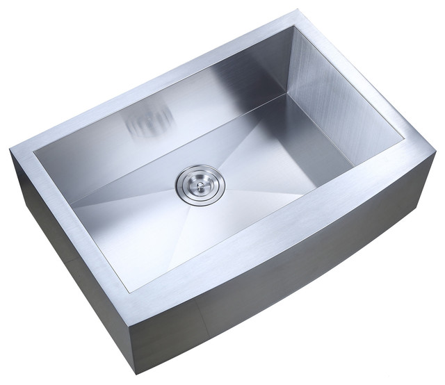 Stainless Steel 30 Inch Single Bowl Apron Front Farmhouse Kitchen Sink by Chevington. Constructed of heavy-duty, 16-gauge, 304-grade stainless steel with nano titanium surface treatment. Features sound-absorbing insulation on the sides and bottom to reduce noise and under cabinet condensation. Glacier Bay All-in-One Apron-Front Farmhouse Stainless Steel 33 in. Single Bowl Workstation Sink with Faucet and Accessories Sinber 33'' 16 Gauge Single Bowl Stainless Steel Farmhouse Apron Kitchen Sink $349.96 $499.95 previous price $499.95 30% off 30% off previous price $499.95 30% off Undercoated and padded with SoundAbsorb technology to minimize the noise of water flow, the 16-Gauge, 304 series VIGO 30 in. Camden Stainless Steel Farmhouse Kitchen Sink with satin finish is ideal for your modern kitchen. This sink's curved apron front extends just over the edge of your countertop, making it modern and cool.