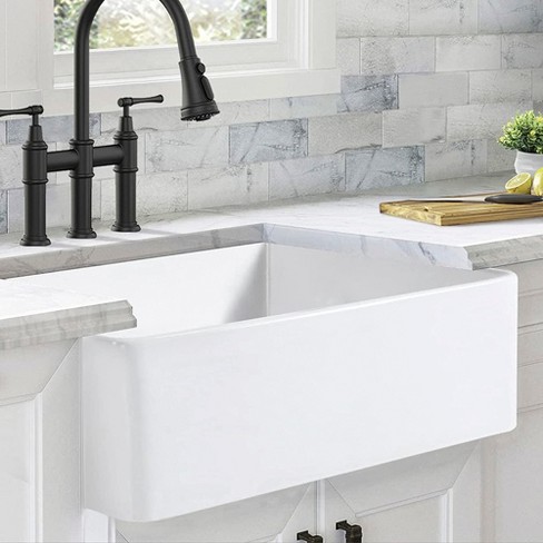 DeerValley DV-1K026 White 30 Inch Farmhouse Kitchen Sink,Ceramic Porcelain Fireclay Deep Single Bowl Farm Kitchen Sinks BOCCHI 1137-001-0120 Classico Apron Front Fireclay 24 in. Single Bowl Kitchen Sink with Protective Bottom Grid and Strainer in White