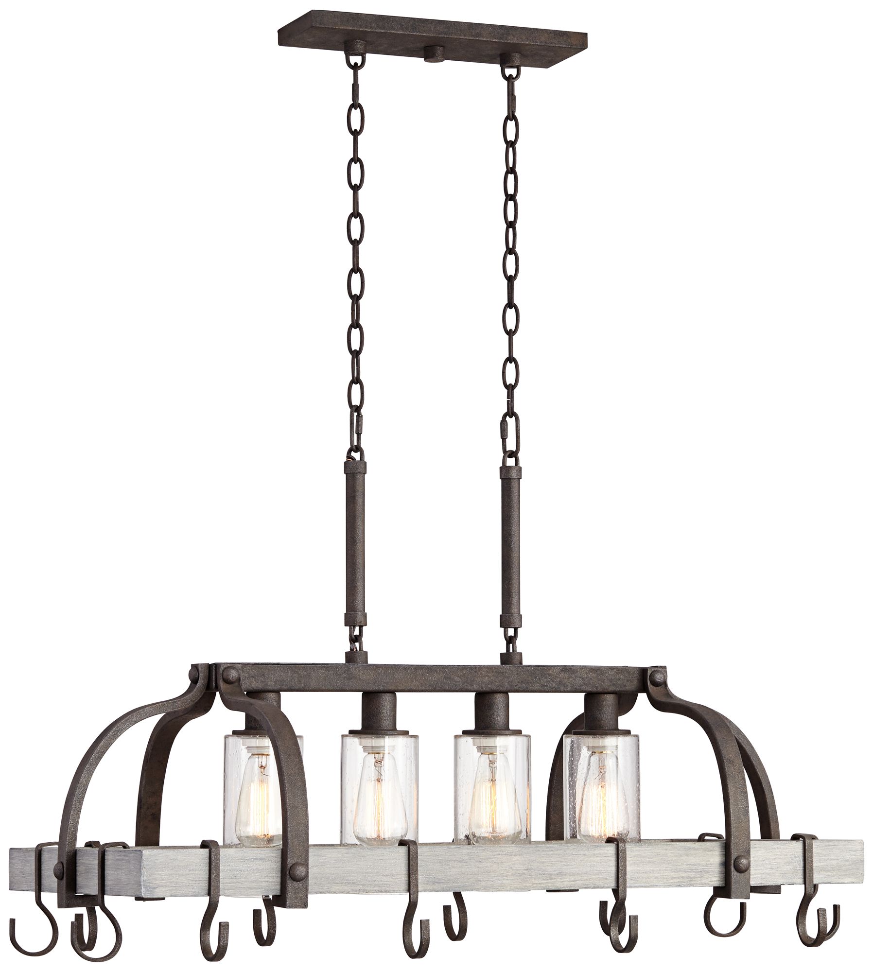 Eldrige Bronze Wood Finish Pot Rack Linear Pendant Chandelier Lighting 36 1/2" Wide Rustic Farmhouse Clear Seed Glass 4-Light Fixture Kitchen Island ...