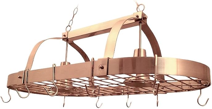 2-Light Copper Kitchen Pot Rack Light with Hooks Elegant Rose-Gold-Copper Finish. Item description. "Update your kitchen in style with this industrial look 2 light pot rack fixture featuring a rose gold copper finish., 2 ft. of cord (from top of fixture) and 10 hooks. Pot Rack Light Fixtures from Kevin Clark Originals are beautifully designed, high quality light fixtures. Let your pots and pans be the center of attention in your kitchen. These light fixtures will not only be the center of attention they will light up the area while saving space, and stylish. An impressive pot rack that can be attached to a kitchen island. All is constructed of durable steel with a rectangle frame on top and neat scrollwok. The rack has a built-in lighting system and multiple hooks for hanging pots and pans. Custom built pot pan storage racks from. Constructed of sturdy wood and... Your kitchen fixtures are probably the most utilized products in your house. Would you use a pot filler or a hand spray? A lot of it is based on personal preference, so think about what you When picking a finish, be sure to choose one that works with your cabinet hardware and light fixtures; after...