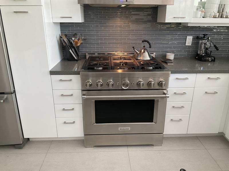 Kitchenaid gas range 36 inch. Kitchenaid 36 Gas Range.Commercial Style Range with 6 burners. These are guaranteed to fit perfectly in a 30-inch gap between cabinets with a countertop depth of 24 to 25 inches a cabinet depth of 23 to 24 inches and a countertop height of 36 inches. KitchenAid - 6.7 Cu. Ft. Self-Cleaning Freestanding Double Oven Dual Fuel Convection Range - Stainless steel. Model: KFDD500ESS. SKU: 6623489. User rating, 4.4 out of 5 stars with 351 reviews. (351) Price Match Guarantee. $2,564.99. Your price for this item is $ 2,564.99. KitchenAid® 36'' Smart Commercial-Style Gas Range with 6 Burners Expand your skills with a 36-inch KitchenAid® Commercial Style Range with 6 burners. This gas range features two versatile 20,000 BTU Ultra Power™ Dual-Flame Burners with the power and precision needed to successfully sear, simmer, stir-fry and sauté. KFGC506JSS KitchenAid 36" Smart Commercial-Style Gas Range with 6 Burners - Stainless Steel Expand your skills with a 36-inch KitchenAid Commercial Style Range with 6 burners. This gas range features two versatile 20,000 BTU Ultra Power Dual-Flame Burners with the power and precision needed to… $5394.10 Sign in to see Final Price