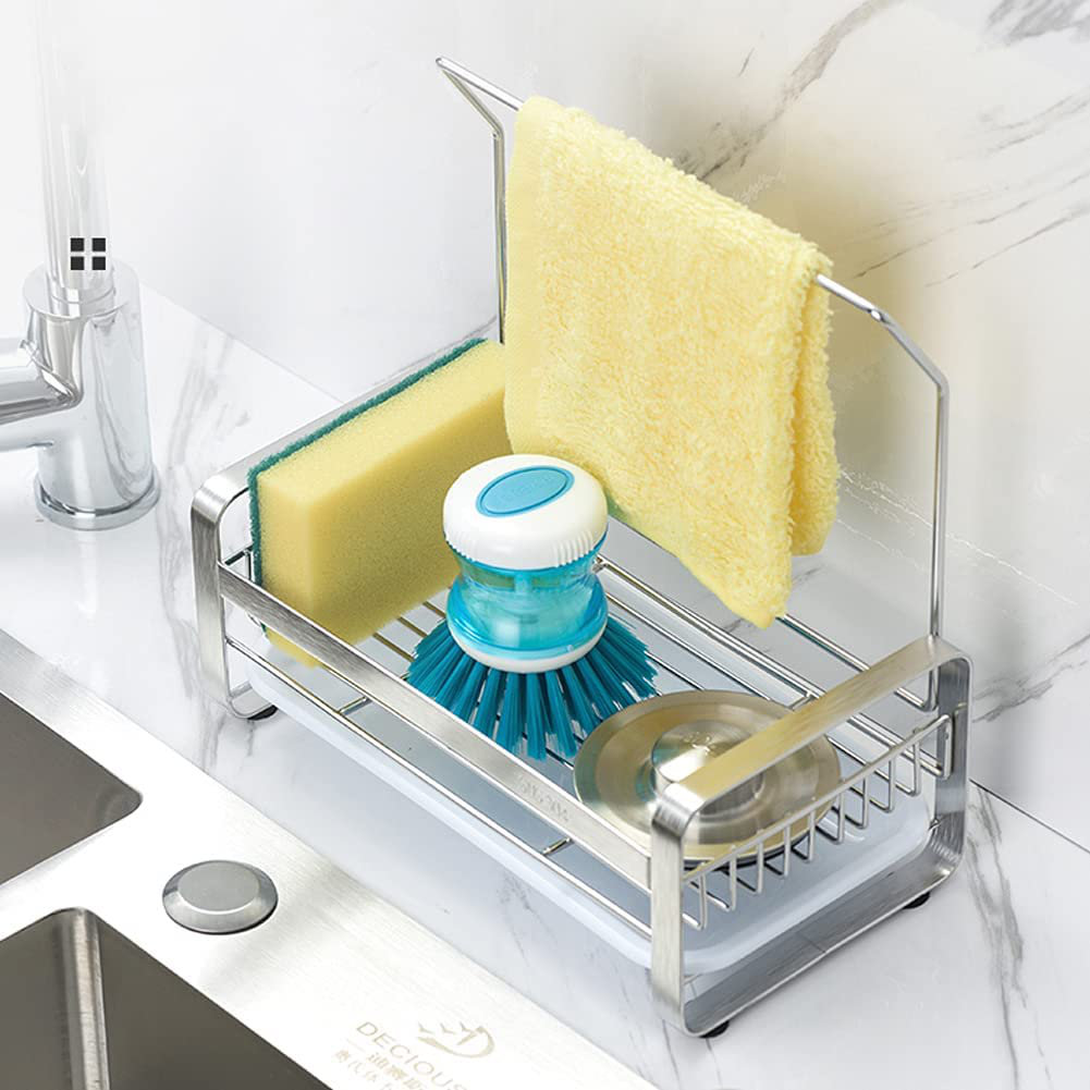 Sink Caddy, Sponge Holder for Kitchen Sink, Multifunctional Sink Caddy Sponge Soap Brush Dishcloth Storage, 304 Stainless Steel Kitchen Sink Organizer with Safety Bar & Removable Drain Pan (A-Silver) 【Versatile Sink Caddy】The sink caddy is designed with a larger independent area on the left which can be used to place long-handled brushes ... New Fashion Great Kitchen Sink Dish Multi-function Drainer Drying Rack Kitchen Washing Holder Basket Organizer Tray - C$ 15.17 ★5 - 2 sold by Event & Xmas Supplies Store - SPECIFICATION Brand Name: EH-LIFE Origin: CN(Origin) Style: Traditional Chinese Material: Plastic Material: TPR+PP