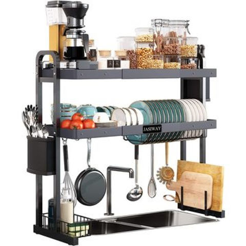 Over The Sink Dish Drying Rack,2 Tier Stainless Steel Large Adjustable Kitchen Dish Drainer (27.5"-33.5"), Space Saver Storage Organizer Shelf Above Counter With Utensil Holder And 6 Hooks. by CHAMPIONS. $309.99. Free Shipping. The size of this over sink dish drying rack is 27.5"-33.5" (L) * 12.09" (W) * 31.5" (H).