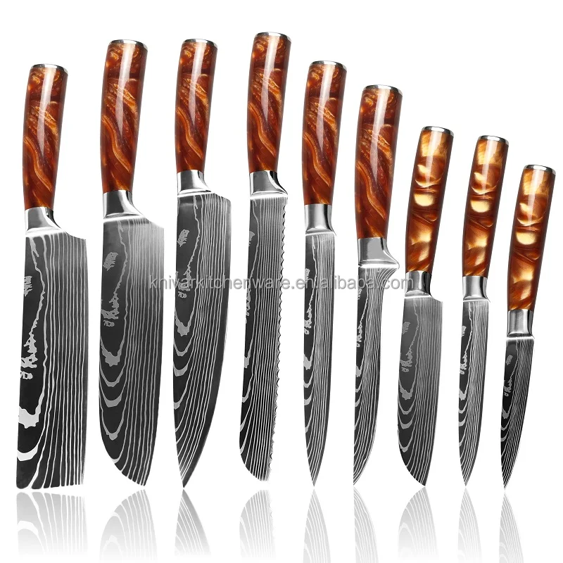 9 Pieces Carbon Steel Kitchen Chef Santoku Sciling Bread Cleaver Butcher Utility Paring Knife Set With Colour Resin Handle - Buy Colour Resin Handle ...