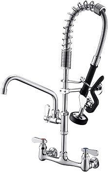 Kitchen Faucet Wall Mount Commercial Sink Faucet Kitchen Utility Laundry 8 Inch Swivel Spout 2 Dual Handle Restaurant Chrome Mixer Tap NSF - - Amazon.com. Get the best deals on Commercial Wall Mount Faucets when you shop the largest ... Krowne 8 Inch Faucet Kitchen Sink Commercial Wall Mount 12in Spout Centers. Delta Commercial Double Handle Wall Mounted Pre-Rinse Kitchen Faucet with 1.5 GPM Add-On Single Handle Tubular Swing Spout Faucet. Model: 55C1583. $648.73. Available in 1 Finish. Delta Double Handle Ceramic Disc Wallmount Faucet with Wrist Blade Handles Long Spout with Bottom Fork Brace and Body Mounted Angle Vacuum Breaker from the Commercial ...