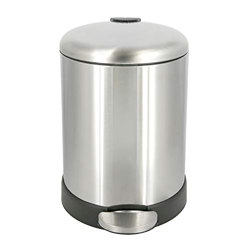 Small Trash Can, 1.2 Gallon | Round Stainless Steel Garbage Bin With Soft Close Lid & Step Foot Pedal | Metal Waste Basket With Removable Inner Bucket