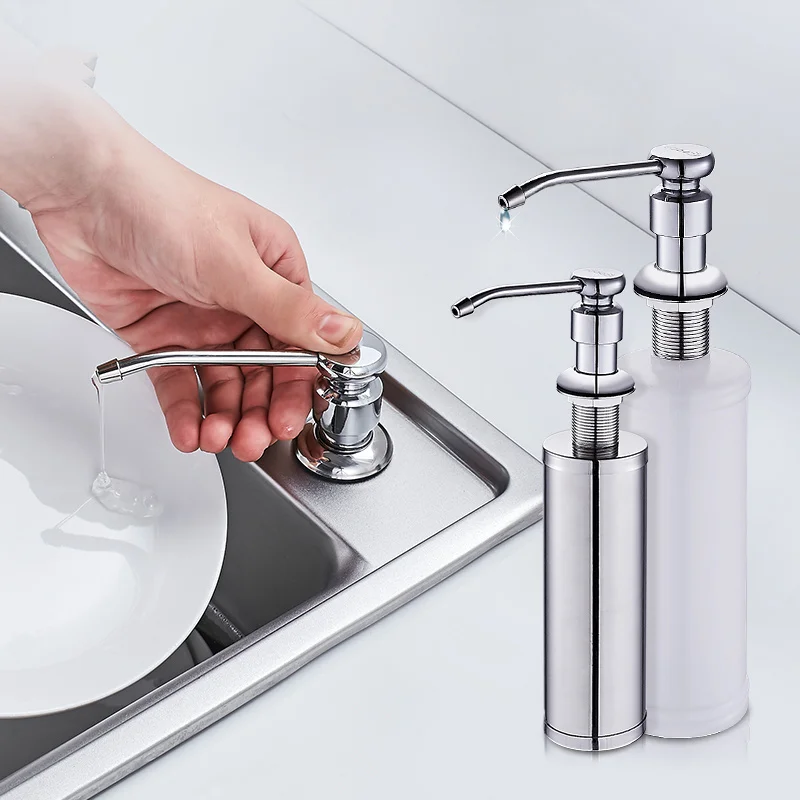 Amazon.com: under counter soap dispenser GAGALIFE Built in Sink Soap Dispenser or Lotion Dispenser for Kitchen Sink, Brushed Nickel ABS Pump Head, with 13 Ounce Large PET Soap Bottle. . This dish soap dispenser for kitchen sinks is made from ABS plastic with brushed nickel coating for a metallic look. This makes it suitable for all kitchen sinks.