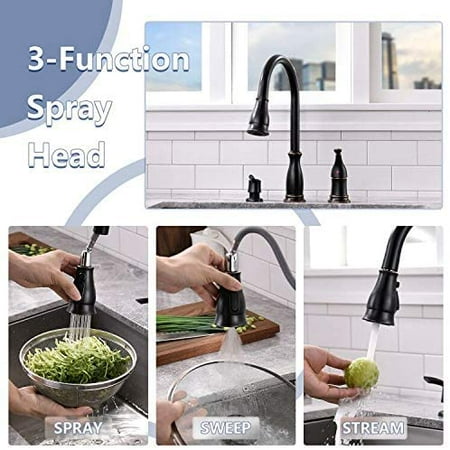 3 Hole Kitchen Faucet with Pull Down Magnetic Docking Sprayer Oil Rubbed Bronze, 2-Hole Pull Out Kitchen Sink Faucet with Side Single Handle and Soap ...