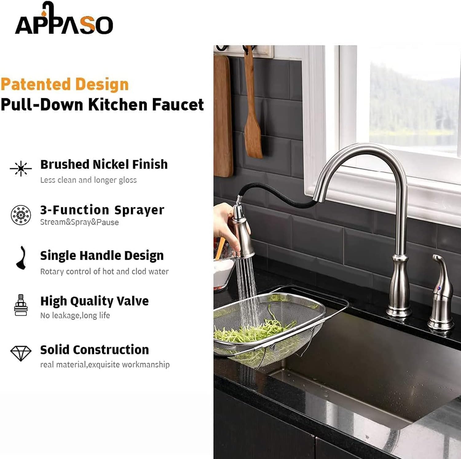 Rackaphile Aquablade Kitchen Faucet Classic Design Single Handle 2 Mode Kitchen Sink Faucets with Pull Down Sprayer, Brushed Nickel fits 1 or 2 Hole ...