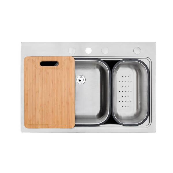 X Home 33x22 Inch Drop In Kitchen Sink with Cutting Board, Bottom... 【Drop-in】 Easier to install than undermount sink, the rim of the sink can hide the cut-out after installation. Included Components. Sink, Cutting Board, Colander, Rollup Rack, Bottom Rinse Grid, Basket Strainer Drain Assembly, Cutout Template, Mounting Brackets, Installation Guide.