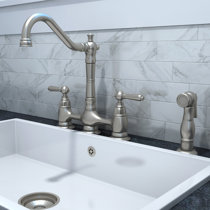 Artesso® | Bridge Faucet with Side Sprayer Bridge Faucet With Side Sprayer 62525LF-GL. $1437.00. List price as shown (US $): $1,437.00. Selected Finish: Luxe Gold. Bridge Kitchen Faucets | KingstonBrass.com Kingston has a large selection of Bridge Kitchen Faucets in a variety of styles and finishes. Available in popular colors like Bronze, Black, Nickel, Bronze and Brass. Call our Kitchen & Bath Experts Toll-Free at 1-877-252-7277, for help selecting the perfect Bridge Kitchen Faucet for your project. Showing 1-24 of 372 results. English Country Bridge Faucet with Side Spray - Wayfair Twisthaus Plus Bridge Faucet with Side Spray will awaken your senses with their unique traditional design. Worthy of being placed in any home, these bridge faucets are made of solid brass ensuring you quality and durability for years to come. The bridge style kitchen faucet is known best for its simple, clean lines and open spaces. Heritage 2-Handle Bridge Kitchen Faucet with Side Sprayer ... Duchess 2-Handle Bridge Kitchen Faucet with Side Sprayer in Polished Brass Crafted in commendations to English nobility, Crafted in commendations to English nobility, the exemplary design of this faucet manifests regality and elegance with its black porcelain handles. Whether you are striving for a Victorian-inspired kitchen or a vibrant 1950s-themed space, the unique bridge design is a highly favored option amongst those doing period-style kitchens.