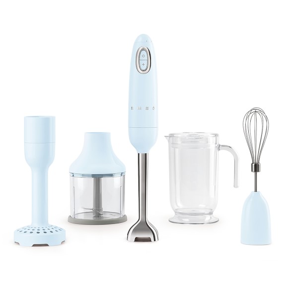 Smeg Hand Blender - Williams Sonoma This smartly styled SMEG hand blender lets you blend soups and sauces and chop even the hardest vegetables with the touch of a button. Ergonomic nonslip grip. Stainless-steel blades with FlowBlend™ system for smooth, even blending. Variable speed knob is conveniently located at top of grip.