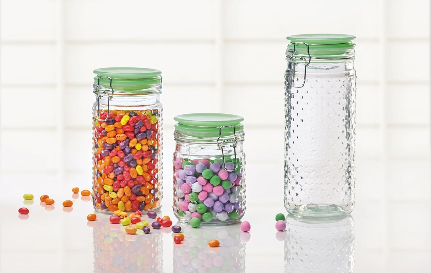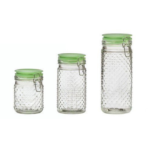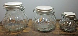 Amazon.com | Amici Meloni Glass Storage Jars - Set of 3 ... Amici's Meloni set of three Melon Shaped storage jars with White ceramic lids and hermetic airtight lids. These airtight storage jars are great for storing Flour; Sugar; Rice; Beans and Pasta. Small Jar is 4-1/2-Inch in height 12-Ounce; Med Jar is 5-1/2-Inch in height 32-Ounce; Large Jar is 6-1/2-Inch in height 52-Ounce.