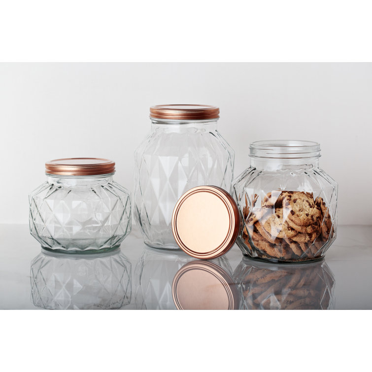 Amici Home Desmond Glass Container Storage Jar, 32 Fluid ... Amici Home Desmond Glass Container Storage Jar, 32 Fluid Ounces, Clear with Copper Lid - New Add beauty to your decor with the Amici Home Desmond Glass Container Storage Jar. This small size canister is a functional glass storage container suited for dry food storage or as a decorative placement in your home or kitchen.