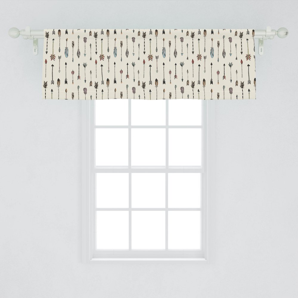 Arrow Window Valance, Bohemian Style Historic with Colorful Feathers Vertically Aligned, Curtain ...