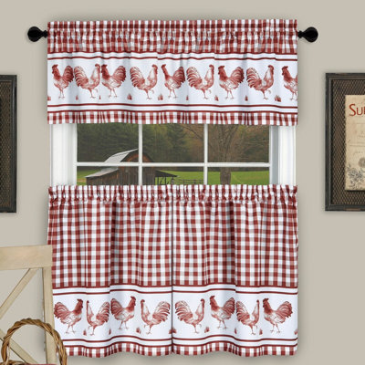 Wayfair | Rooster Valances & Kitchen Curtains You'll Love ... This 58" Window Valance brings together charming roosters and gingham plaid. It is destined to liven up any kitchen window. 58" Width valance has one and a half-inch rod pocket that allows for easy shirr on rod installation. It is made of machine-washable polyester. Design: Tailored; Material: Polyester; Header Type: Rod pocket; Room Use: Foyer ...