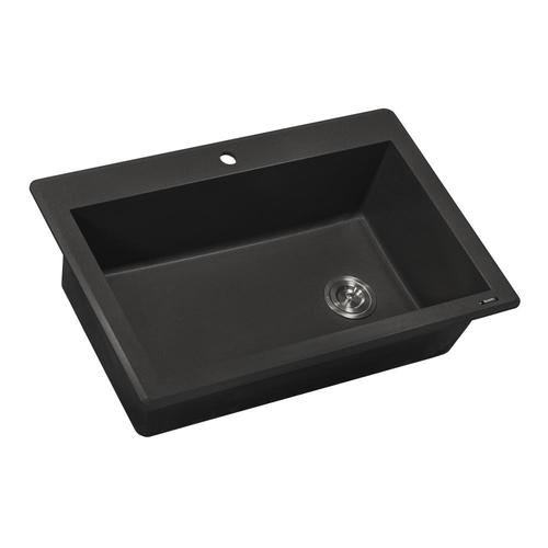 Ruvati epiGranite Dual-mount 33-in x 22-in Black Galaxy Single Bowl 4-Hole Kitchen Sink in the ...