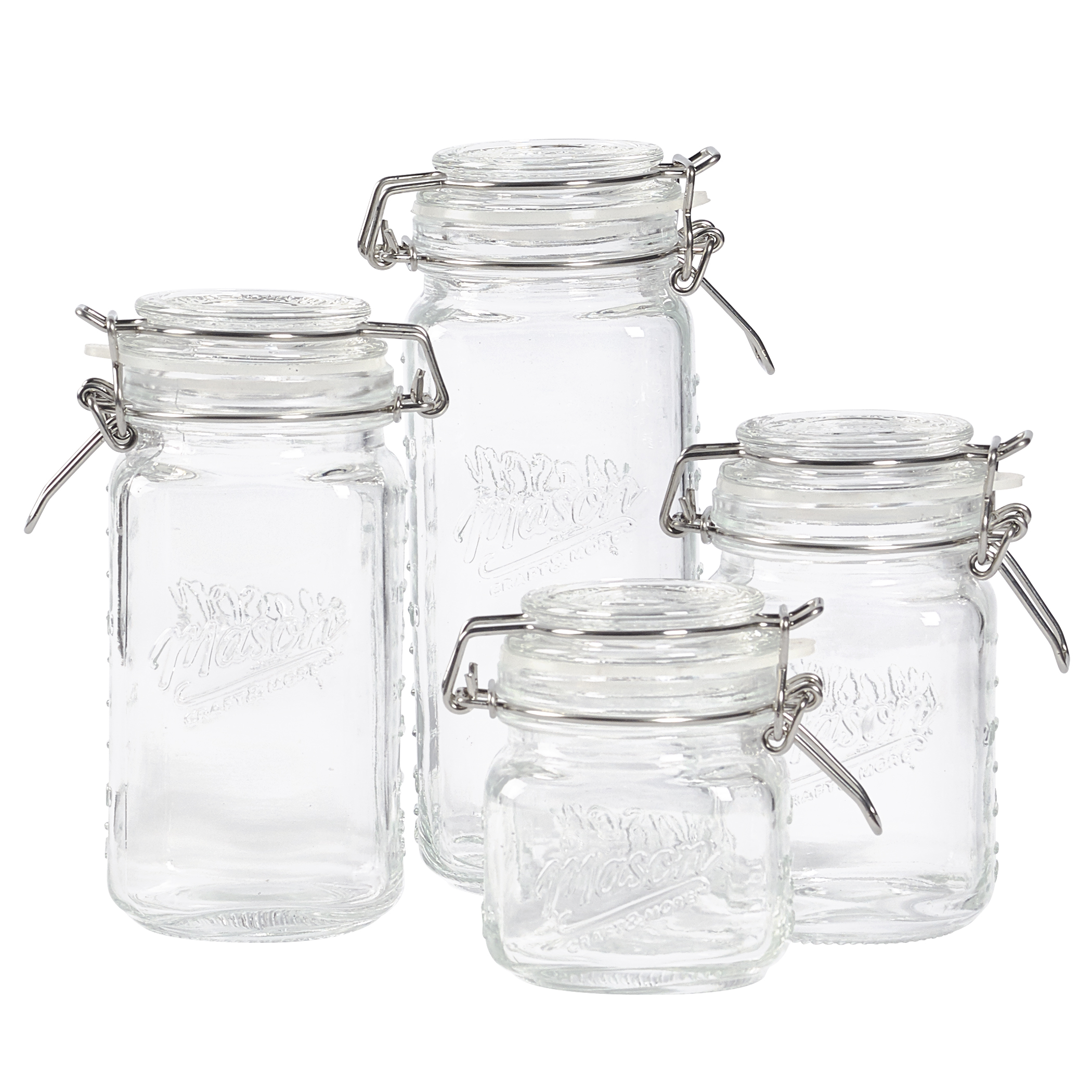 Mason Craft and More 1L Preserving Jars with Clamp Lids ... Product Description. Mason Craft and More 1L Preserving Jars with Clamp Lids - Set of 2 Our Mason Clamp glass jars have a specially designed clamp top lid with durable rubber gasket to ensure a leak-proof and airtight seal. Glass does not discolor, retain smells or leach chemicals into food. These Mason claim jars are made from the highest ... Bail Lid Jars - Healthy Canning To operate a bail-type jar, you put your food in the jar, and then put a rubber ring on top of the jar, and then a glass lid on top of the rubber ring. (Note that a fresh rubber ring is required each time.) To hold the lid in place, use the clip hinge at the front to clamp. The directions that were commonly issued were to clamp the lid half-way ... $9.95 - $17.95 Italian storage jars are stylish with large openings for easy access. Lids clamp down on foods with vulcanized rubber gaskets for an airtight seal. Clear glass with metal clamps Vulcanized rubber gaskets Dishwasher-safe Made in Italy Reviews (124) Add to Cart Below Fido 1-Liter Jar with Clamp Lid 4"Wx4"Dx6.25"H SKU: 495118 Glass Jars With Clamp Lids - sciplus.com GLASS JARS WITH CLAMP LIDS Item Number : 43232P12 $23.95 PKG (12) Temporarily out of stock. Please check back later. Check Store Availability DESCRIPTION Shut Your Mouth These clear glass jars have rubber gaskets under the glass lids, which shut with those steel clamps that all the really classy overpriced jam and jelly jars have.