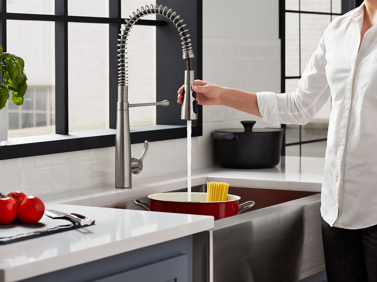 Faucets Category - Kohler Smart Home With a ceiling mount and wireless functionality, the Purist® Suspend™ kitchen faucet streamlines your kitchen tasks without adding clutter to your workspace. Keep pure water flowing. Smart water and filter monitoring gives you confidence in your water quality—and how much you use. Aquifer Refine® water purification system with KOHLER ...