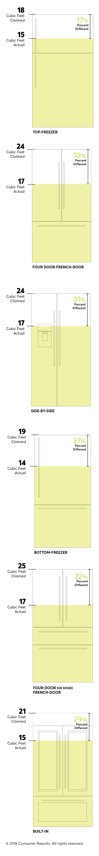 What Refrigerator Size Do I Need? | Size Chart Included For reference, each adult needs approximately 4 to 6 cubic feet of refrigerator space. That said, industry experts assess that a typical family of four needs at least 20 cubic feet of capacity to house a healthy amount of groceries. These factors and more are what you need to consider before choosing your refrigerator size.