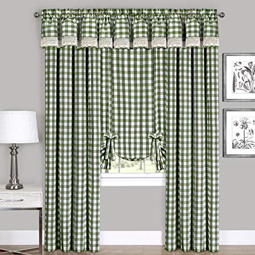 Country Green Checked Window Curtains & Drapes for sale - eBay Achim Buffalo Check Sage Valance With Macrame Trim BCVL14SG12. $12.99 New. Tea Cabin Green Plaid Curtain Panel Set of 2 84x40. (2) $63.95 New. Tea Cabin Green Plaid Lined Curtains Prairie Swag Cotton 36x36x18" Primitive. (1) $31.95 New.