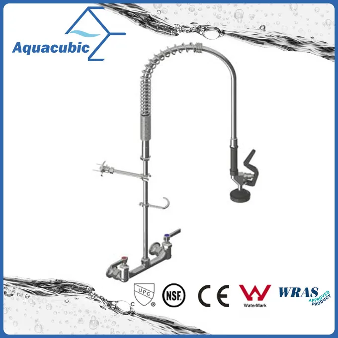 Lead-Free | Commercial Kitchen Faucets Posted on October 17, 2020. Friho Commercial Lead-Free Two Handle Brushed Nickel Kitchen Faucet with Side Sprayer, Stainless Steel 360 Swivel High Arc Two Lever Kitchen Sink Faucet with Pull Out Sprayer Product Description & Features: Kitchen Faucet Overall Height: 13.15", Spout Height: 9.05", Spout Reach: 7.52".