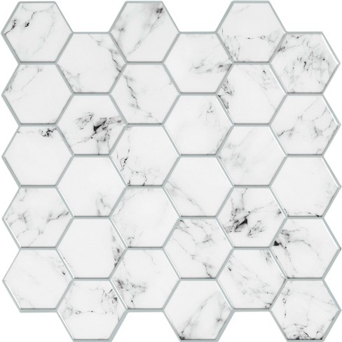 RoomMates Black and White Carrara Marble Hexagon Peel and Stick Backsplash, 4-Pack, 10.5" X 10.5" Per Tile