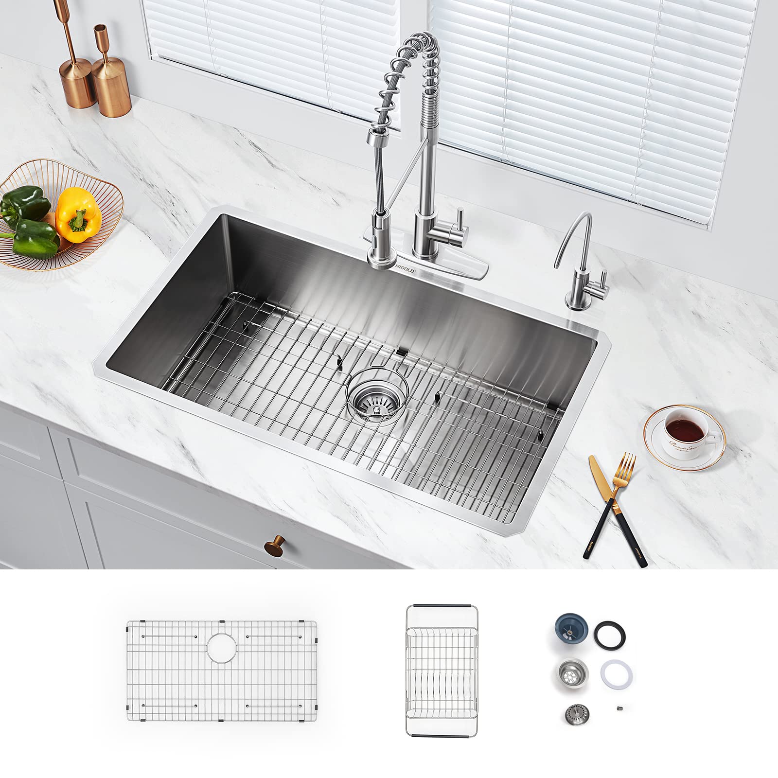 33 Undermout Sink Stainless, Dcolora 33 Inch Kitchen Sink Undermount 16 Gauge Brushed Stainless Steel Single Bowl Kitchen Sink Basin (33"x19"x10")