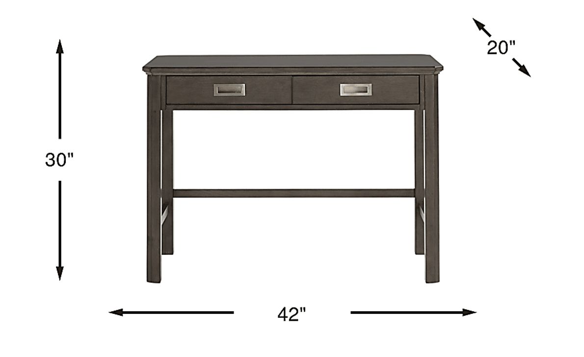 Standard Computer Desk Dimensions (with Photos) - Upgraded Home The standard wall-mounted computer desk is 41 inches wide, 39 ½ inches tall, and 19 inches deep. This particular model provides shelving on one side, with shelves ranging from 7 ½ to 13 ¼ inches tall. The weight capacity of each shelf is anywhere from 5 to 10 lbs, depending on the shelf size.