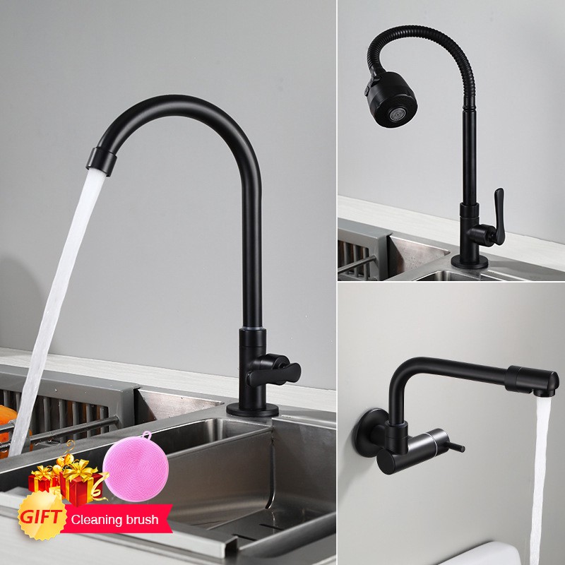 Single cold black kitchen sink faucet cold water 304 stainless steel laundry sink faucet into the wall faucet