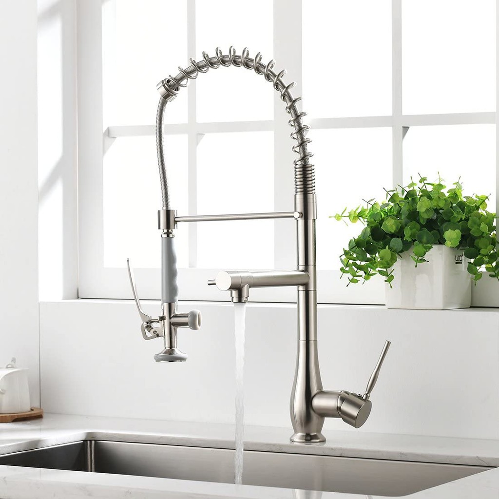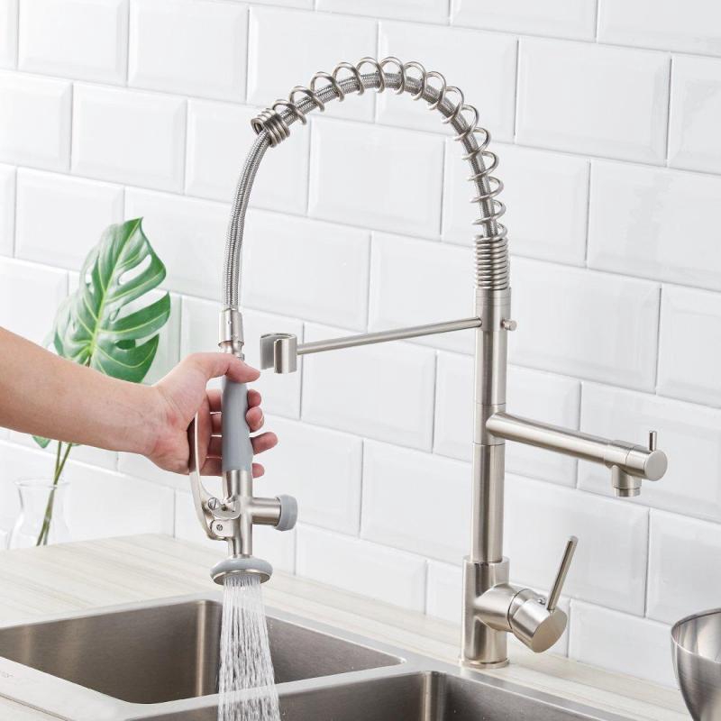 Qomolangma Contemporary Spring Kitchen Sink Faucet with Pull Down Sprayer, High Arch Commercial Stainless Steel Single Handle Spring Kitchen Faucets ...