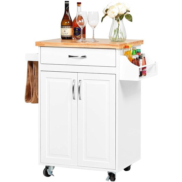 oneinmil Rolling Kitchen Island Cart on Wheels, with Wood Top, Storage and Drawers, Small Portable 40 Inch, White